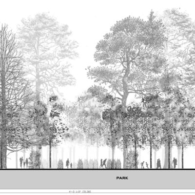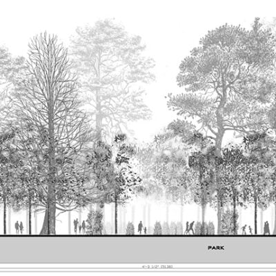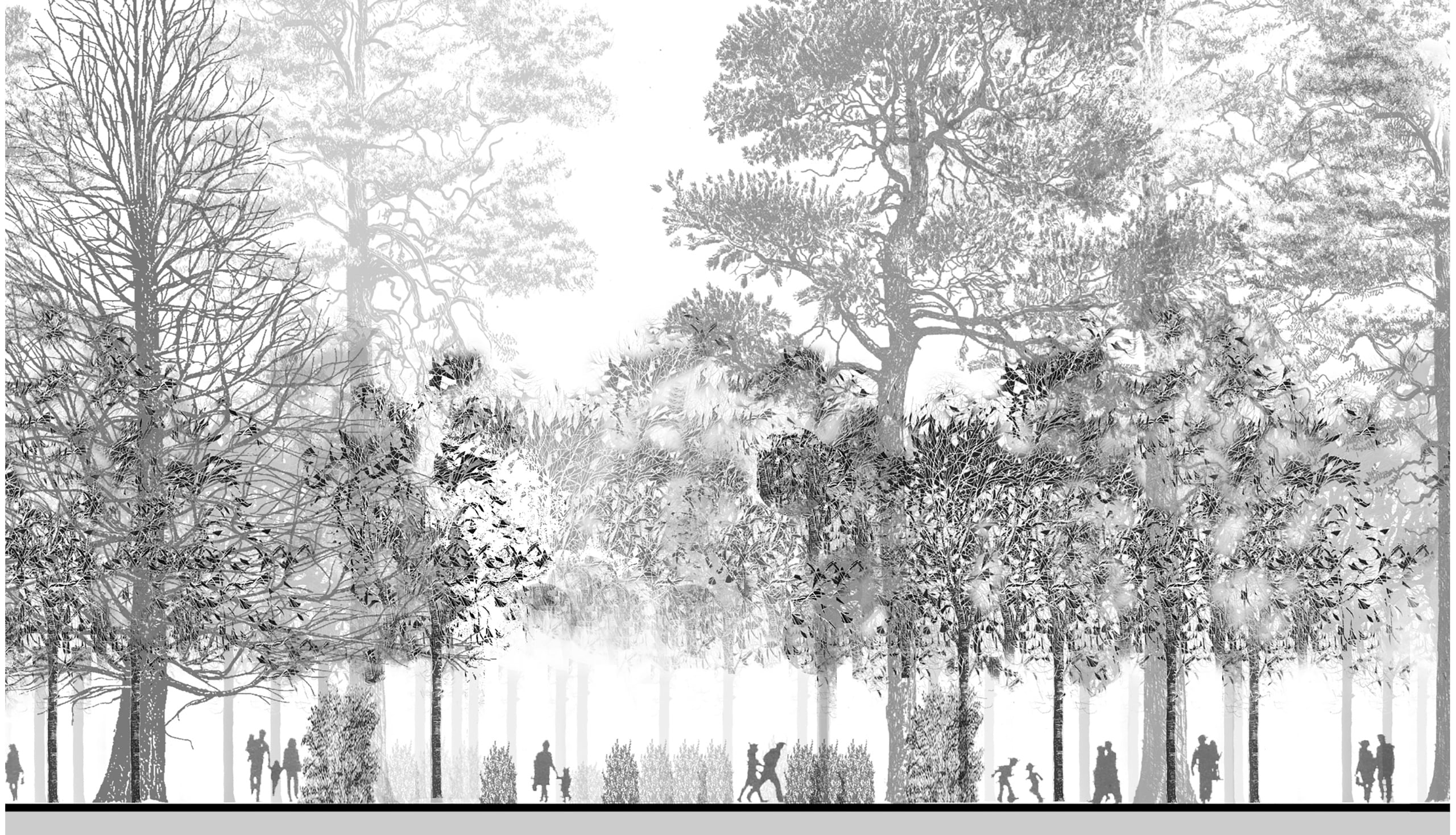 Dans le cadre de l’agrandissement du musée, le projet consiste à l’aménagement de son parc. En bordure du fleuve et attenant au musée, le parc se veut un lieu de promenade. Le parti a été de structurer le parc par la plantation d’arbres et de faire vivre au promeneur une expérience en fonction de sa propre position. Les allées sont organisées pour, soit passer en sous-bois, longer une lisière ou au contraire être l’accès entre les massifs arborés. Ces situations font découvrir au promeneur les différents milieux et la végétation composant les typologies végétales. Un jeu d’ombre et de lumière, de perspectives et de vues se composent pour faire découvrir le parc dans son ensemble. Aux détours d’un chemin, une placette ou un mobilier fait le lien avec l’intérieur du musée et selon l’exposition, celui-ci est vu sous un autre angle.