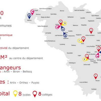 Situé entre Pyrénées et Océan Atlantique, le territoire de Lacq-Orthez s’étire de la frontière landaise aux coteaux de Monein. D’une superficie totale de 750 km2, le territoire compte 55 000 habitants répartis sur 61 communes, peuplées de 125 à 11 000 habitants. La richesse du territoire se manifeste à plus d’un titre. Sur un plan économique, il a été labellisé « Territoire d’industrie » au sein d’un vaste espace inter-régional reliant Lacq, Pau et Tarbes. Le bassin de Lacq est un des 1ers pôles français dédié à la chimie fine et aux matériaux innovants. Le territoire est doté d’équipements qui contribuent à son attractivité culturelle et touristique. Située en pleine nature et aux portes d’Orthez, la base de loisirs d’Orthez-Biron en est un bel exemple avec des équipements et des activités aquatiques et terrestres constamment renouvelées. L’ensemble du territoire est parcouru par 650 km de chemins de randonnée pédestre et VTT.